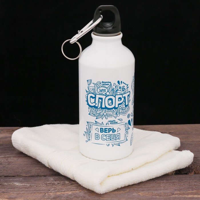 Набор "Спорт", бутылка для воды (500 мл), полотенце (30 х 30 см)