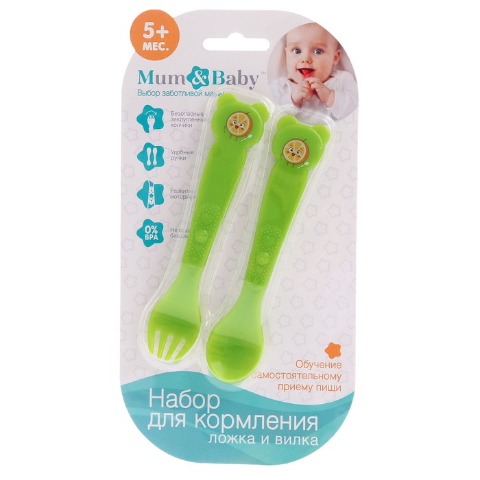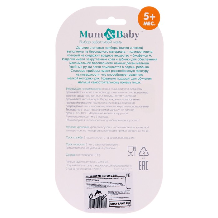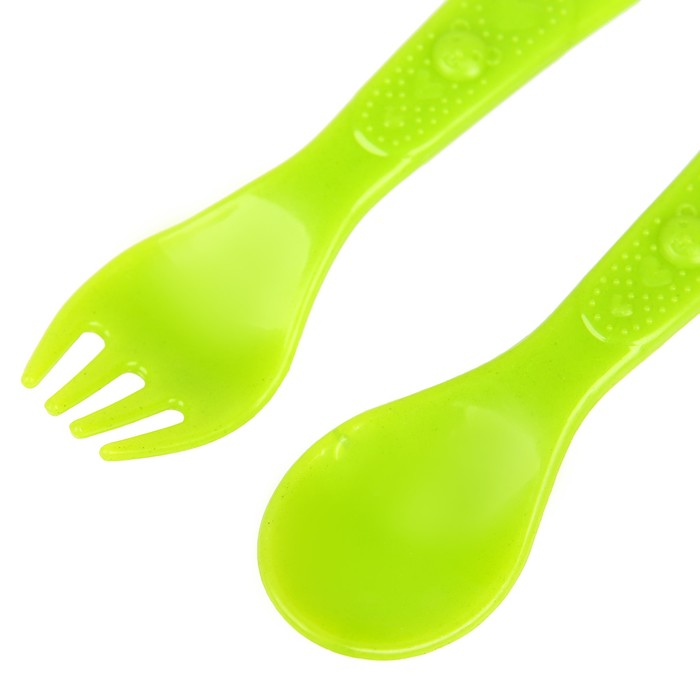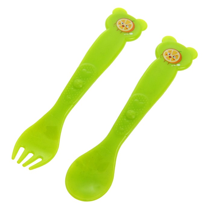 Набор столовых приборов «Фруктовое счастье», 2 предмета: ложка и вилка, от 5 мес., цвет зелёный