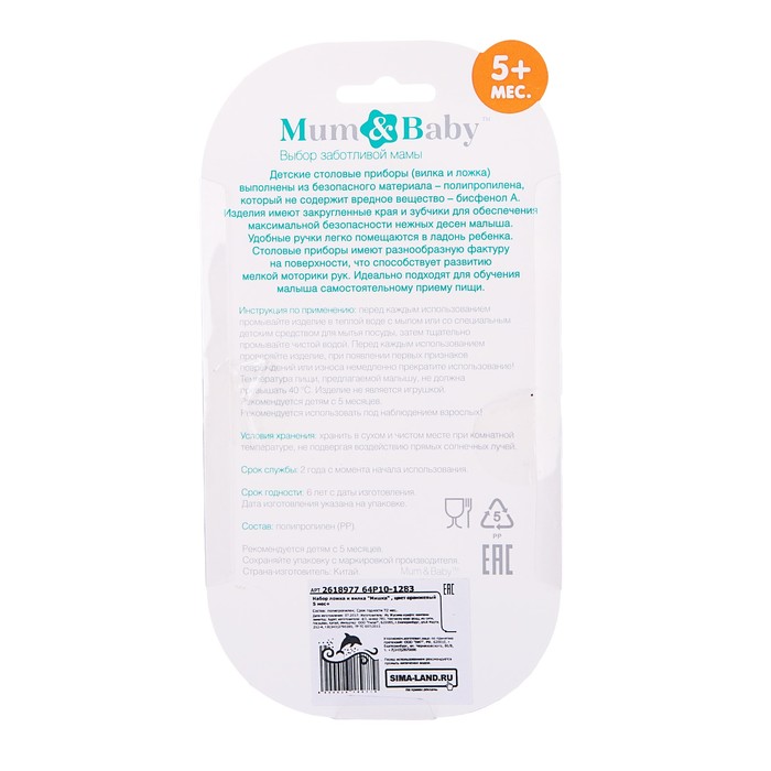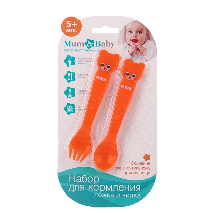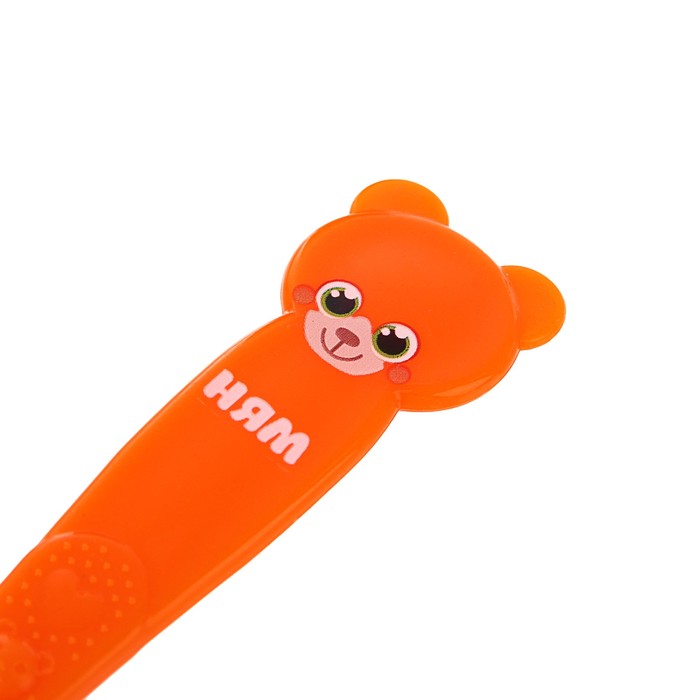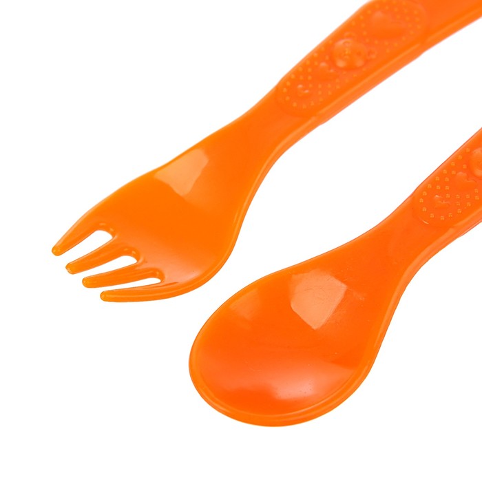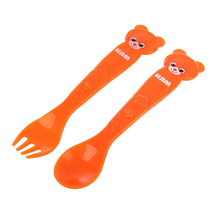 Набор столовых приборов «Мишка», 2 предмета: ложка и вилка, от 5 мес., цвет оранжевый