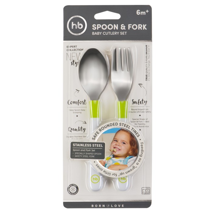Набор столовых приборов: вилка и ложка из нержавеющей стали Happy Baby, лайм