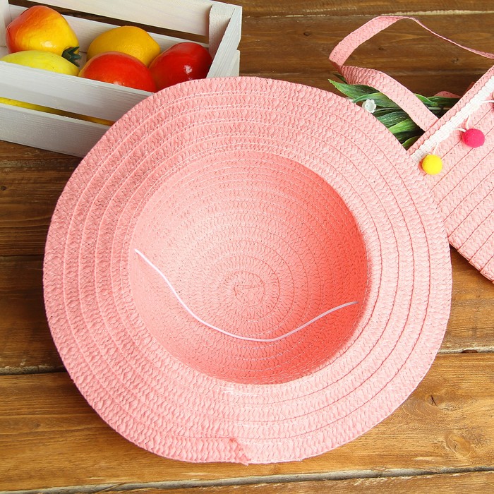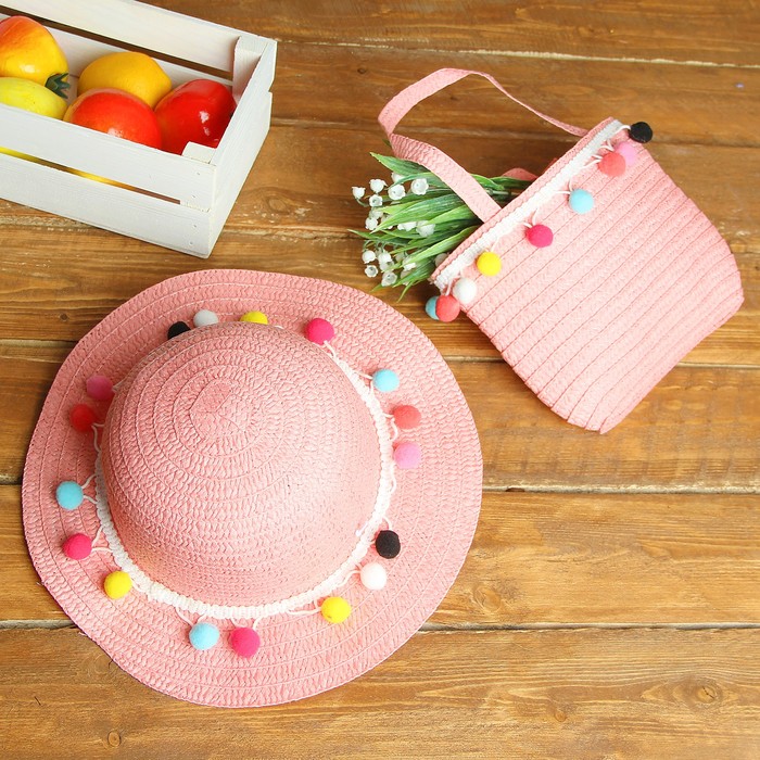 Набор сумочка и шляпка с шариками р-р 50-52 см, цвет персиковый