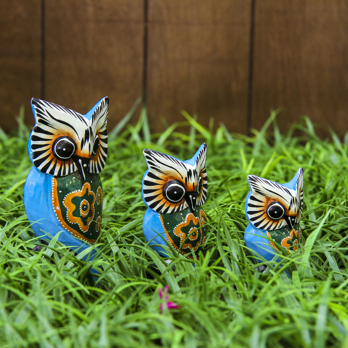 Набор сувенирный "Разноцветные совы" (8,10,12) 9х5х12 см лазурные