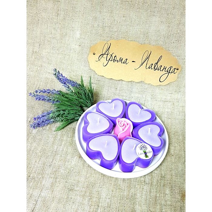 Набор свеча "Ручная работа" С Ароматом лаванды и розы 7шт/уп на подставке