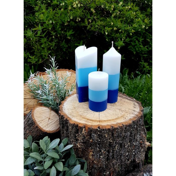 Набор Свечей "Полоска №2"( 68х150,50х155в,52х95) синий — готовое интерьерное решение. Даже не обязательно поджигать фитиль, поскольку композиция выглядит роскошно и самодостаточно. Вы можете добавить несколько подходящих по цветовой гамме аксессуаров, чтобы подчеркнуть собственный безупречный вкус. Приятный бонус: свеча будет долго радовать своих обладателей пленительным танцем огня. На торжествах или при создании романтической обстановки горящее пламя будет роскошным финальным аккордом.