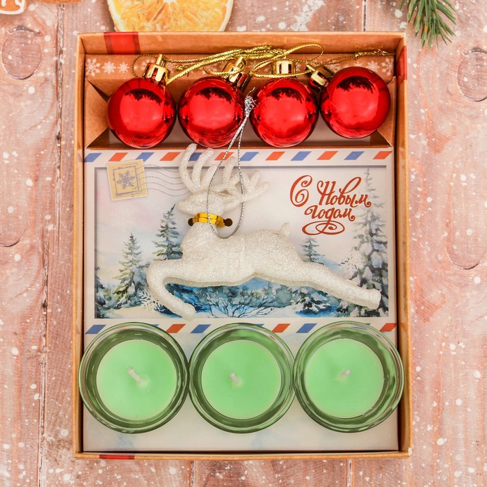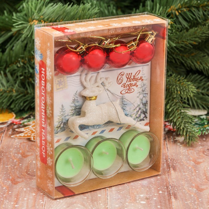 Набор свечей в стекле с декором "С Новым годом!"