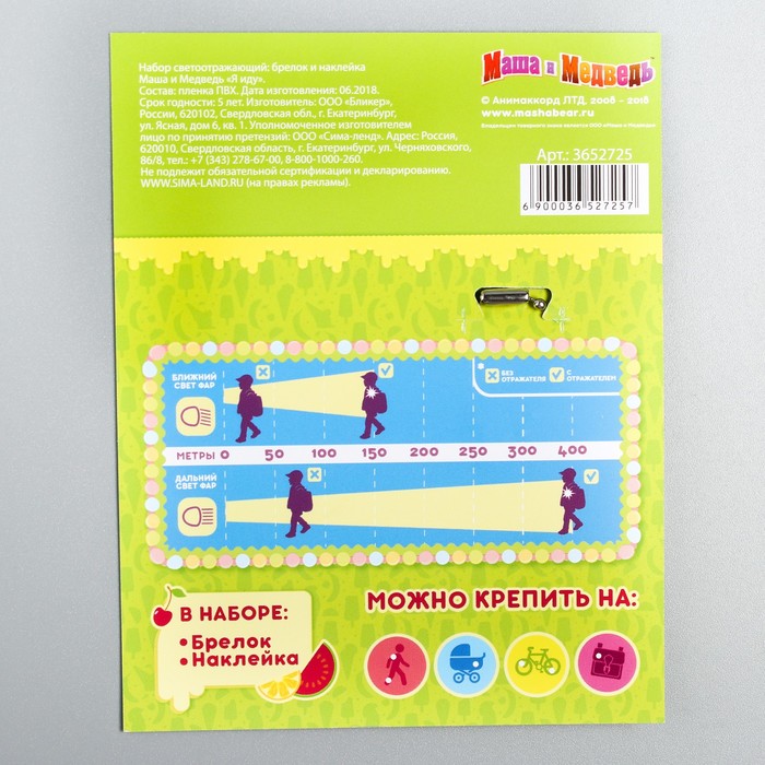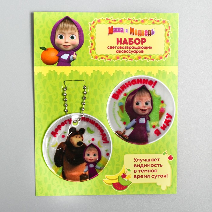 Набор светоотражающий брелок и наклейка Маша и Медведь," Я иду"