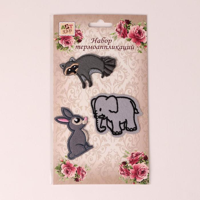 Набор термоаппликаций "Енот, слон, заяц", 3шт, разноцветный