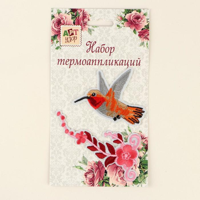 Набор термоаппликаций «Колибри, цветок», 2шт, разноцветный