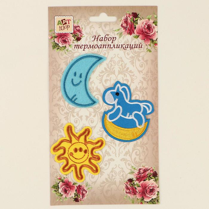 Набор термоаппликаций, "Луна, лошадь, солнце", 3шт, разноцветный