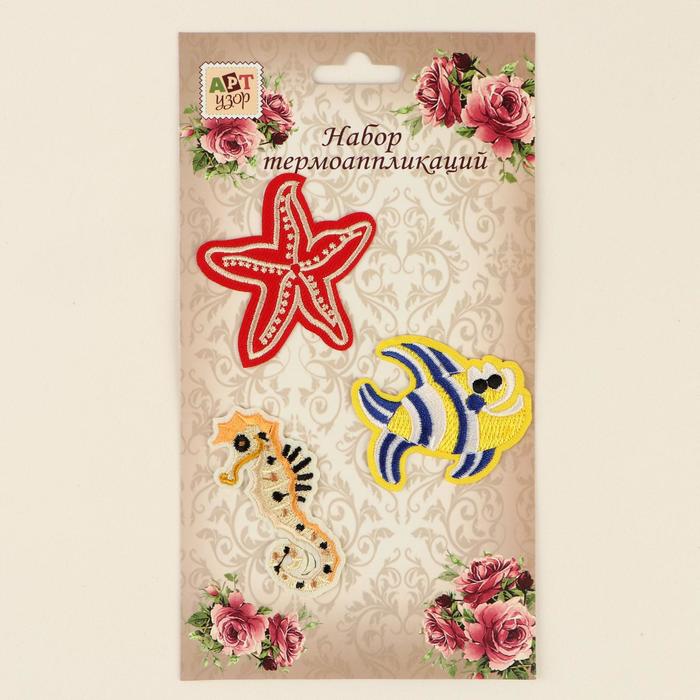 Набор термоаппликаций, "Морская звезда, рыба, морской конек", 3шт, разноцветный