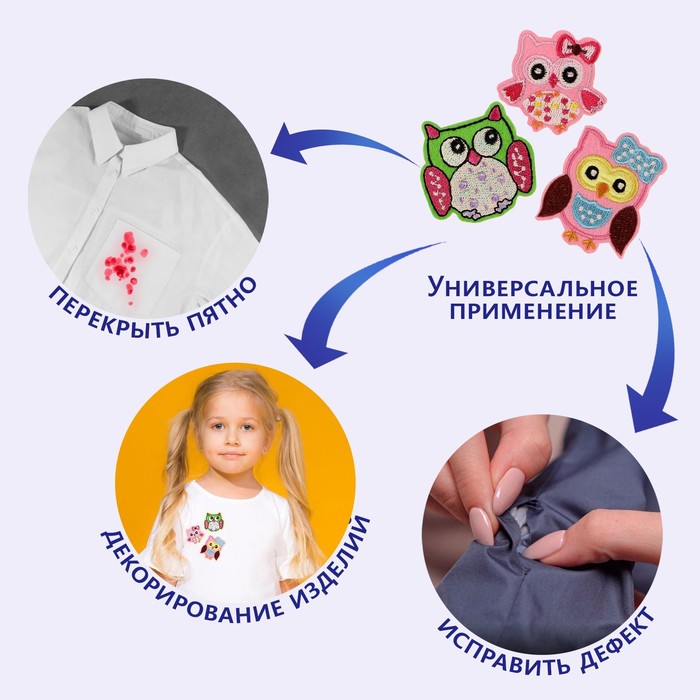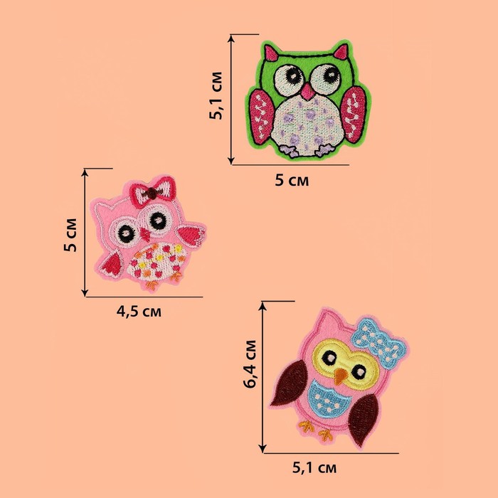 Набор термоаппликаций "Совы", 3шт, разноцветный