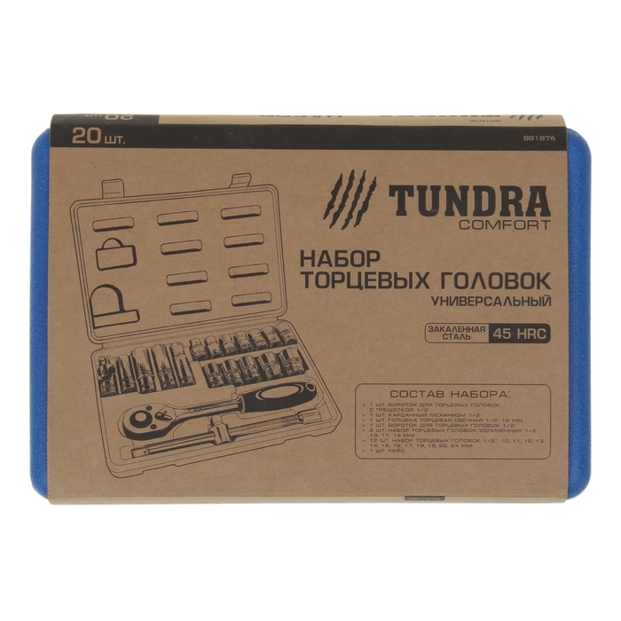 Набор торцевых головок TUNDRA comfort, универсальный в кейсе 20 предметов