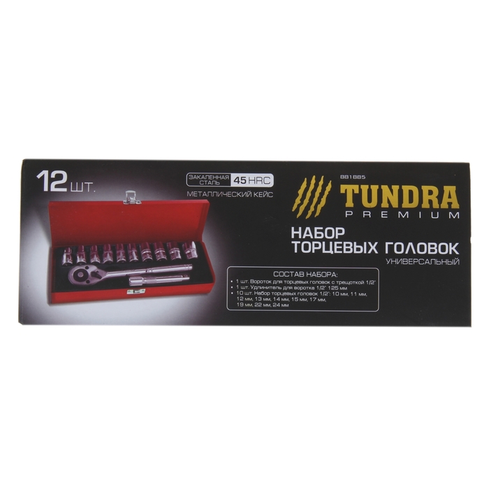 Набор торцевых головок TUNDRA premium, универсальный, металлический кейс, 12 пр.