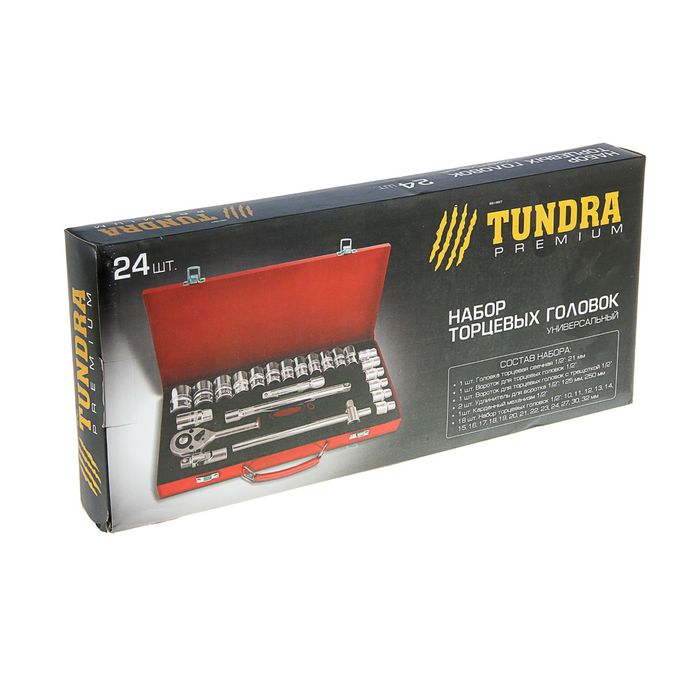 Набор торцевых головок TUNDRA premium, универсальный, металлический кейс, 24 пр.