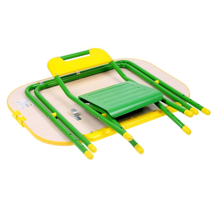 Мебель изготовлен из прочного нетоксичного пластика и металла. Колпачки на ножках стола и стула защищают пол от царапин.