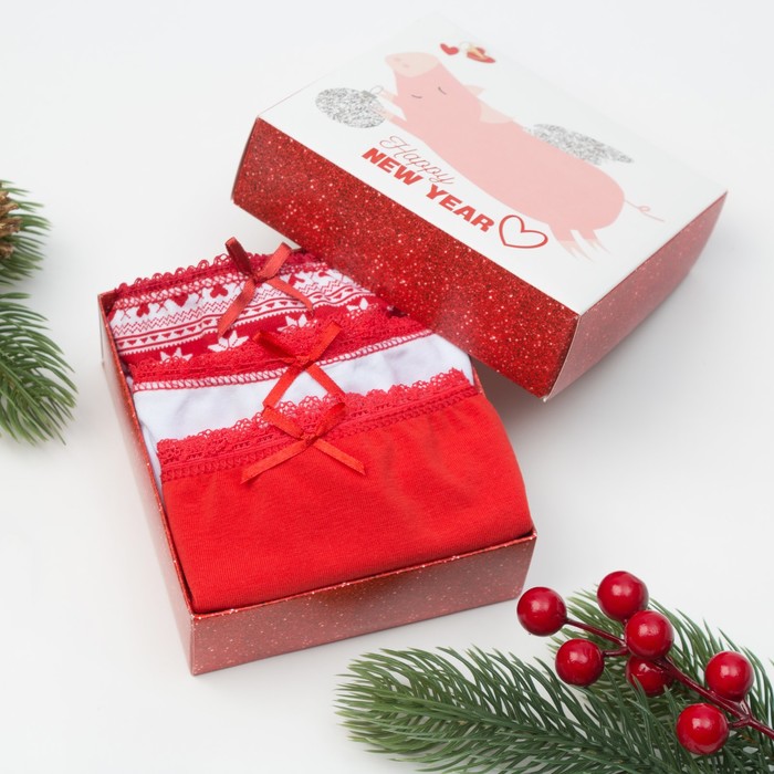Набор трусов женских KAFTAN "New Year" стринги, МИКС, р-р S (42-44), хл. 95%; эл. 5%