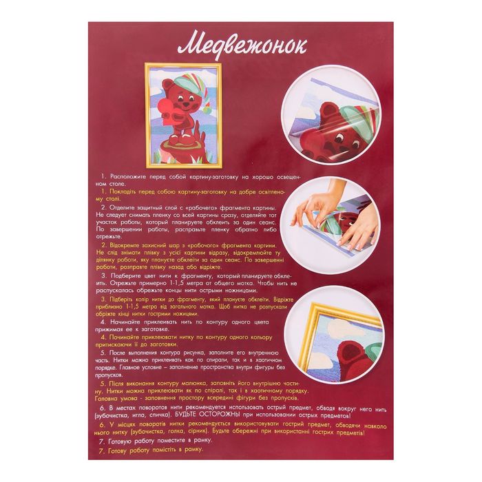Может быть, именно такой необычный товар, как Набор творчества «Ниткография. Медвежонок», раскроет неожиданные способности у вашего ребёнка. И даже если он не станет новым Рафаэлем, то ему, определённо, обеспечена богатая фантазия, креативное мышление и золотые руки.
