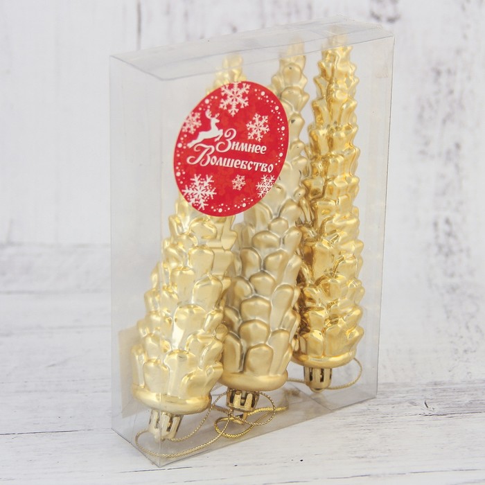Набор украшений пластик 3 шт 12*3 см шишка-сосулька золото