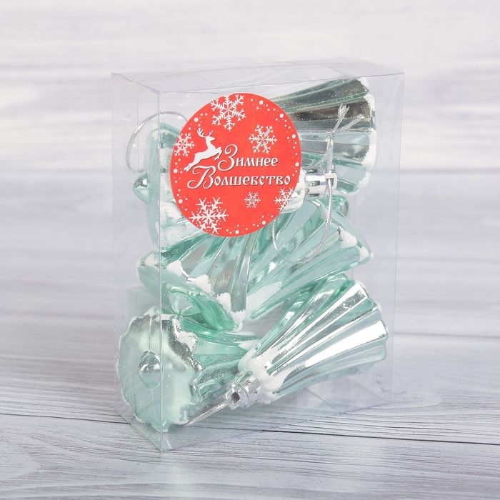 Набор украшений пластик 5*4 см 6 шт колокольчик снег бирюза