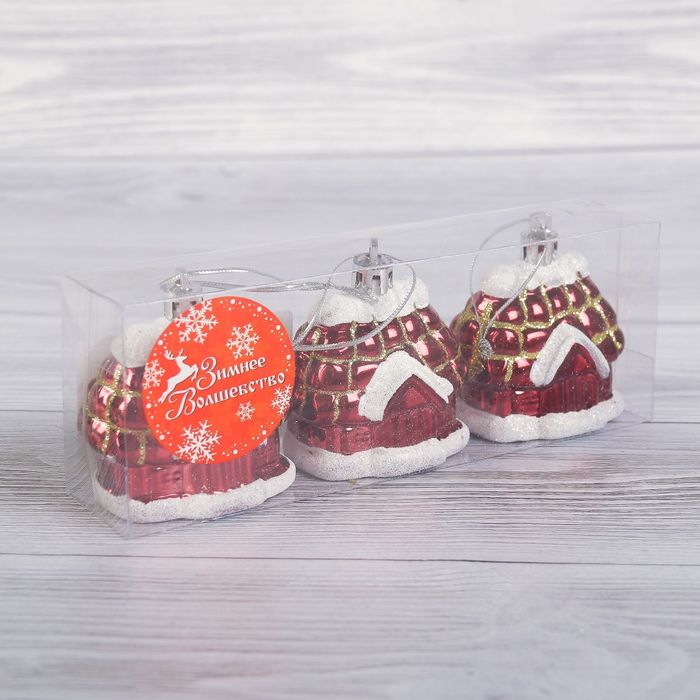 Набор украшений пластик 5*5,5 см 3 шт избушка бордо