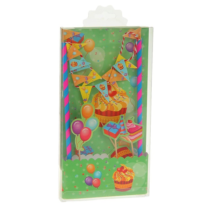 Набор "Весёлый праздник": 1 гирлянда, 4 пики, 1 лента для торта