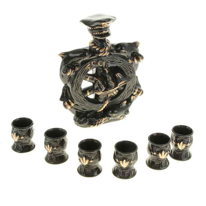 Штоф — это сосуд для крепких спиртных напитков. Он предназначен для хранения вина, водки, коньяка и настойки. К нему прилагаются оригинальные рюмки соответствующей тематики.Набор изготовлен из керамики — прочного материала, способного сохранять температуру жидкости до 4 часов, поэтому вы сможете наслаждаться охлаждёнными напитками даже во время долгих застолий.
