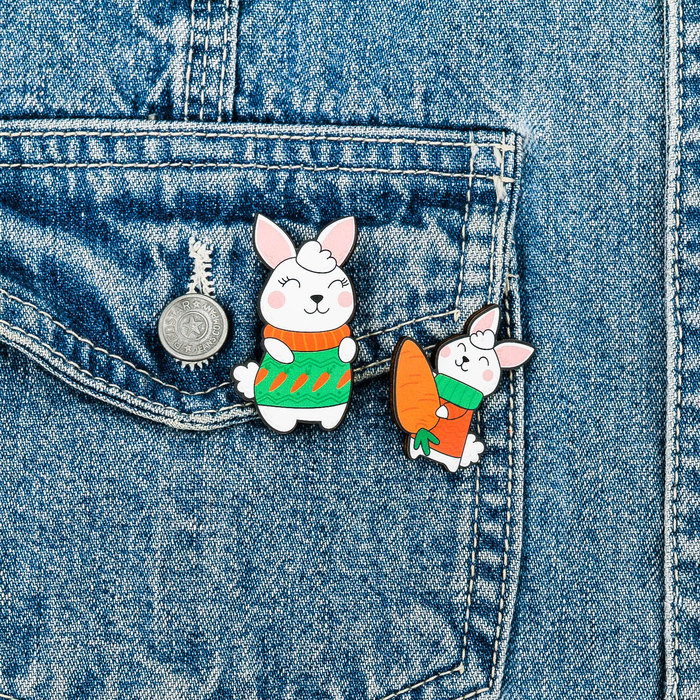 Ни один стиляга не будет выглядеть современно без искусно подобранных украшений, которые завершат его образ! Бижутерия — это современная недорогая альтернатива изделиям из золота и прочих драгоценных металлов. Набор значков для мамы и ребёнка "Зайчики" — это то, что добавит вам шарма!