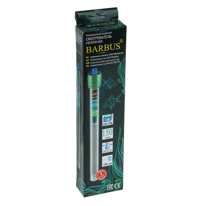 Нагреватель-терморегулятор Barbus 150 Ватт абсолютно безопасен для ваших рыбок. С ним среда обитания будет одинаково удобна для водной флоры и фауны, а вы сможете наслаждаться созданным вами миром.
