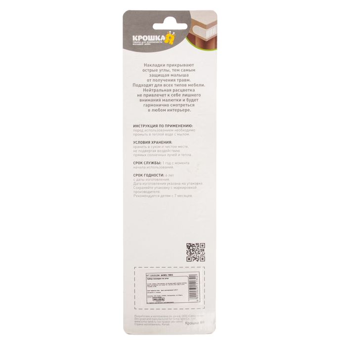 Мягкая накладка прикроет острые углы стола, тумбочки или кровати. Приспособление защитит малыша от случайных травм.