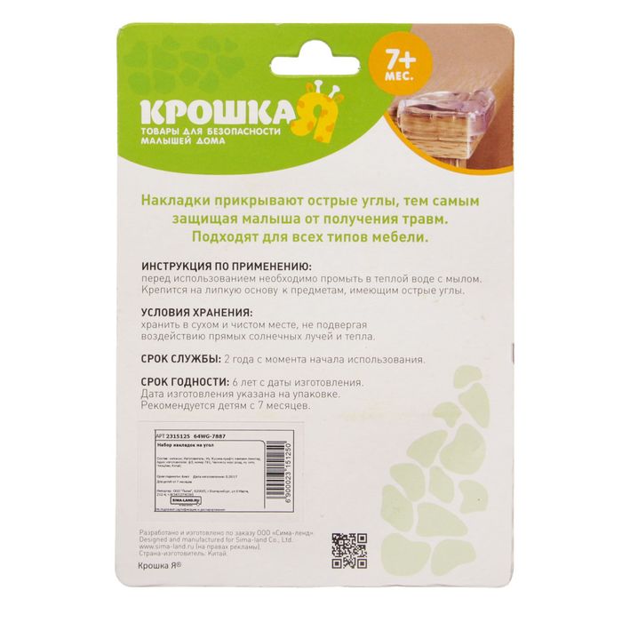 Мягкие накладки уберегут малютку от ударов об острые углы мебели. Изделия крепятся на поверхность за счёт клейкого слоя.