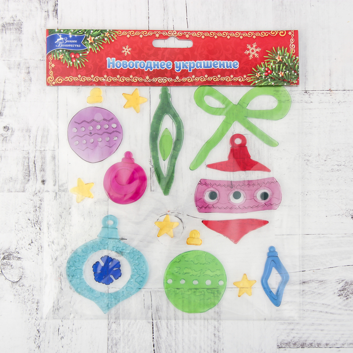 Наклейка на стекло "Ёлочные игрушки" 18,5*18,5 см, набор 21 шт