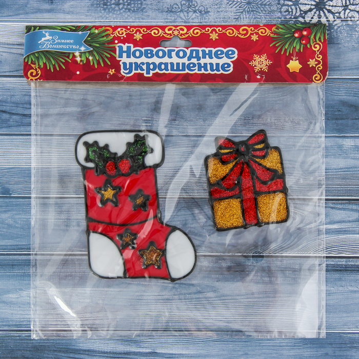 Наклейка на стекло "Носок и подарок" 9,5 см