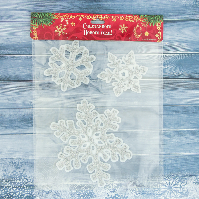 Наклейка на стекло "Снежинки" 12,5 см, 8,5 см, 7,5 см, серебро