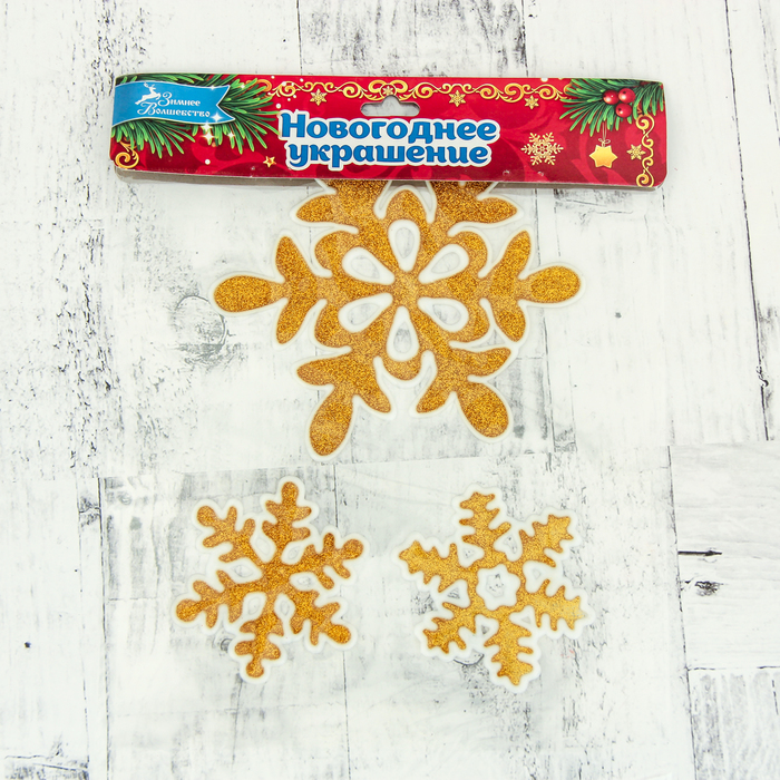 Наклейка на стекло "Снежинки" 13 см, 7 см, жёлтый