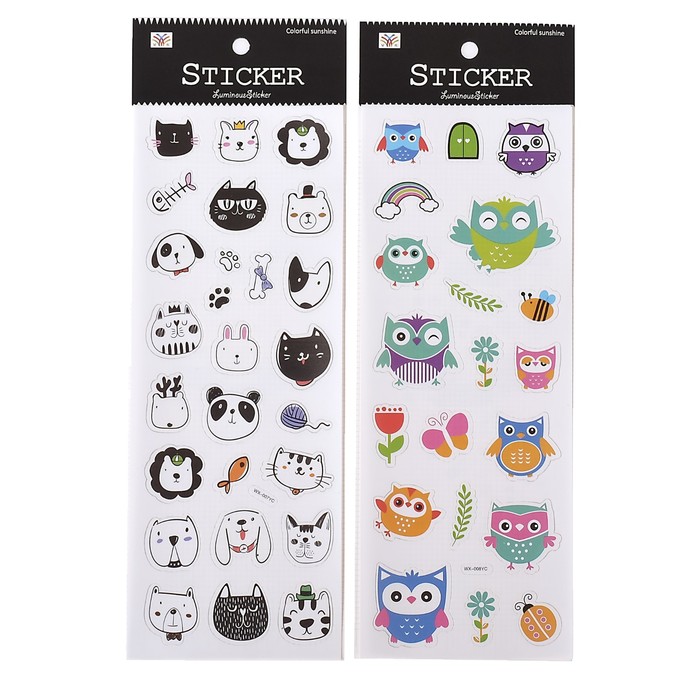 Наклейка пластик фосфорная "Зверята и птички" МИКС 30х10,5 см