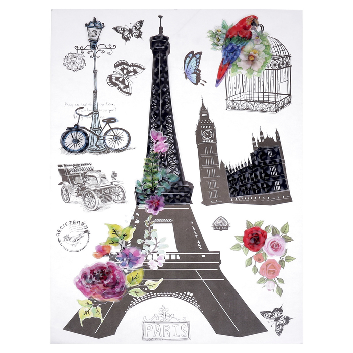 Наклейка пластик интерьерная "Эйфелева башня. Романтика" МИКС 77х50 см