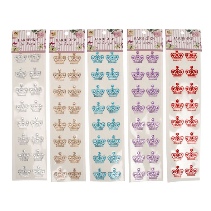 Наклейка пластик стразы "Корона с самоцветами" МИКС 31,5х7 см