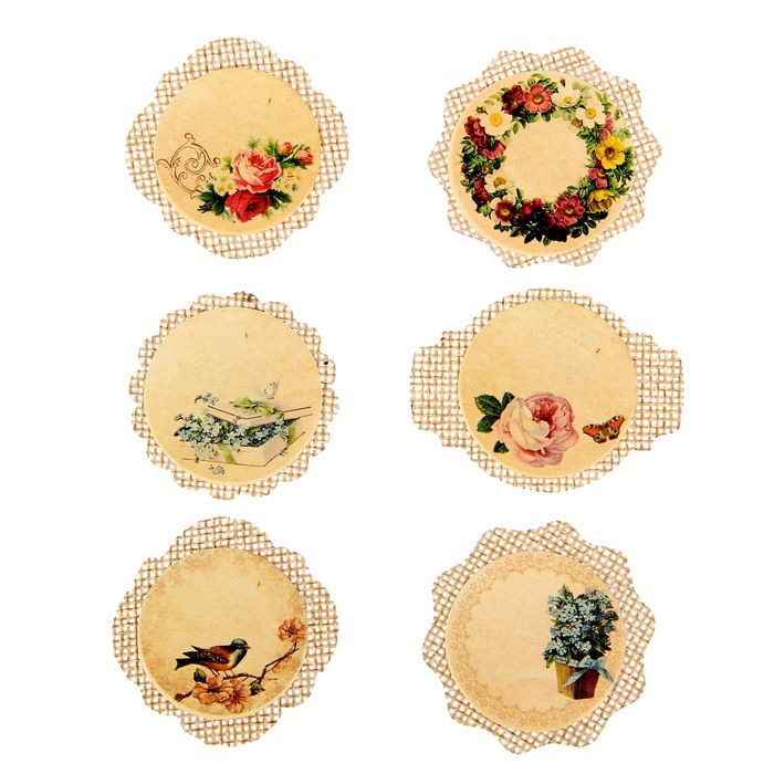Декоративные наклейки на тканевой основе — шикарное дополнение к оформлению открыток, альбомов, блокнотов, упаковки подарков, сувениров, мыла или свечей ручной работы. В комплект входит 6 картонных элементов на двусторонней клейкой ленте, прикреплённых к тканевой основе, что придаст вашей работе больше тепла и уюта.