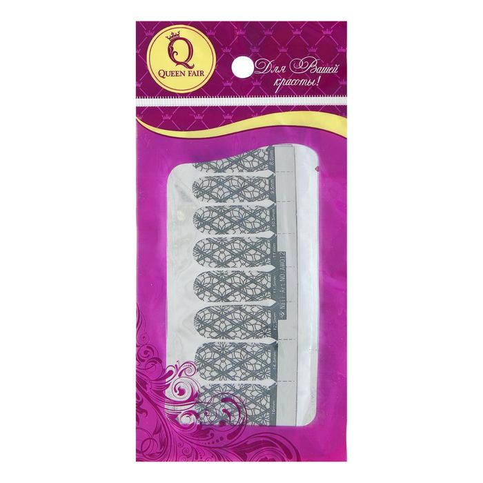 Наклейки для ногтей "Цветы в ромбе", с пилкой, с блёстками, цвет чёрно-белый