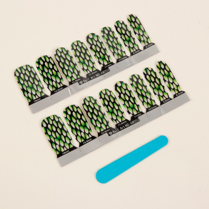 Наклейки для ногтей "Рептилия", с пилкой, с блёстками, цвет зелёный