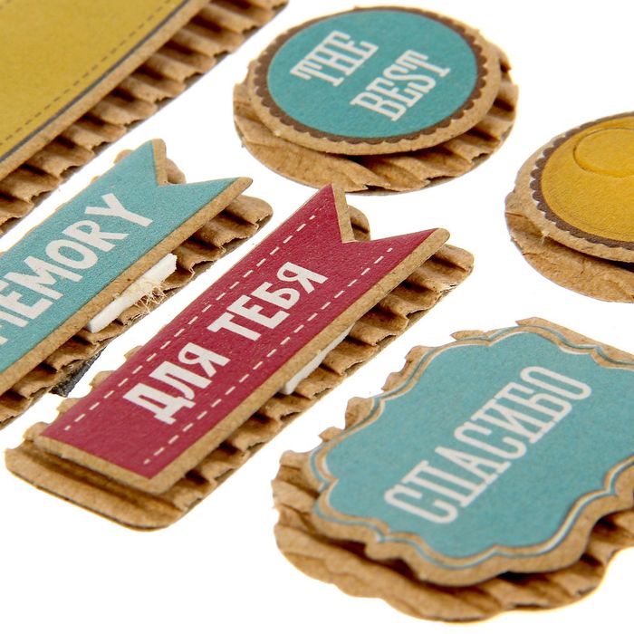 Многослойные наклейки из гофрокартона становятся всё популярнее с каждым днём! Они мгновенно привлекают внимание яркостью, объёмом и оригинальностью. Изделия подходят для украшения любого скрап-объекта: альбомов, блокнотов, открыток. Особенно хорошо декор сочетаются с пакетами из крафт-бумаги.