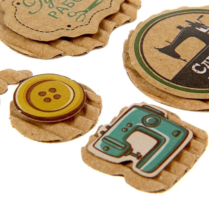 Многослойные наклейки из гофрокартона становятся всё популярнее с каждым днём! Они мгновенно привлекают внимание яркостью, объёмом и оригинальностью. Изделия подходят для украшения любого скрап-объекта: альбомов, блокнотов, открыток. Особенно хорошо декор сочетаются с пакетами из крафт-бумаги.