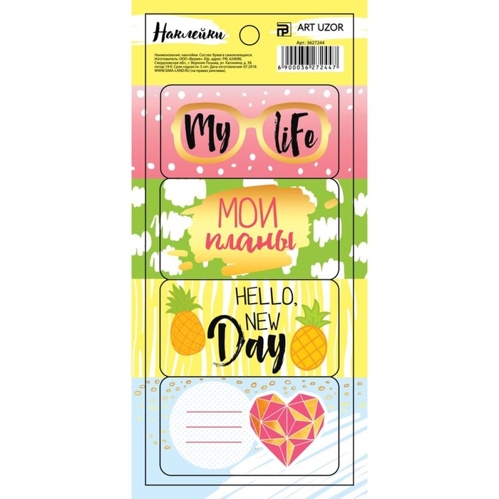 Наклейки под вписывание Hello new day, 7,5 x 17 см