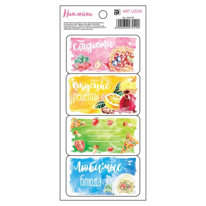 Наклейки под вписывание «Вкусные рецепты», 7,5 x 17 см