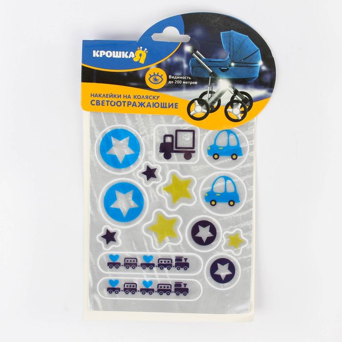 Специальные наклейки обезопасят ребёнка на проезжей части. Светоотражающие элементы отзеркаливают сияние фар автомобилей и позволяют заметить коляску даже в темноте.