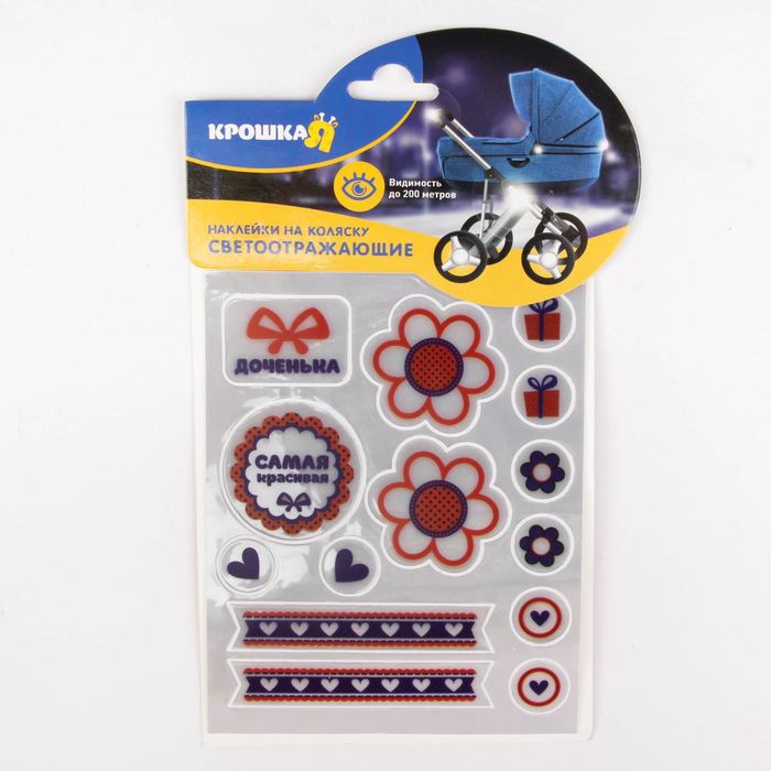 Специальные наклейки обезопасят ребёнка на проезжей части. Светоотражающие элементы отзеркаливают сияние фар автомобилей и позволяют заметить коляску даже в темноте.