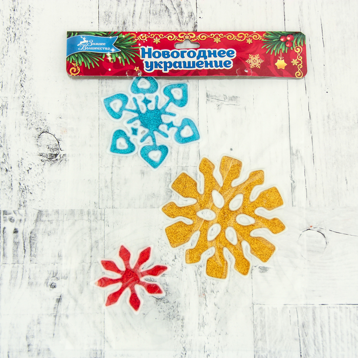 Налейка на стекло "Снежинки" 10 см, 8,5 см, 6 см, красный, жёлтый, синий
