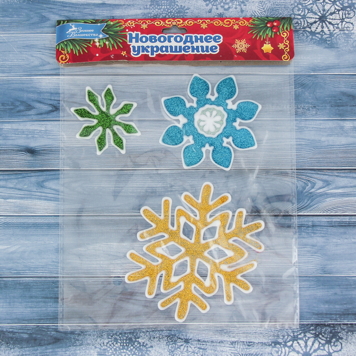 Налейка на стекло "Снежинки" 11 см, 8,5 см, 6 см, синий, зелёный, жёлтый