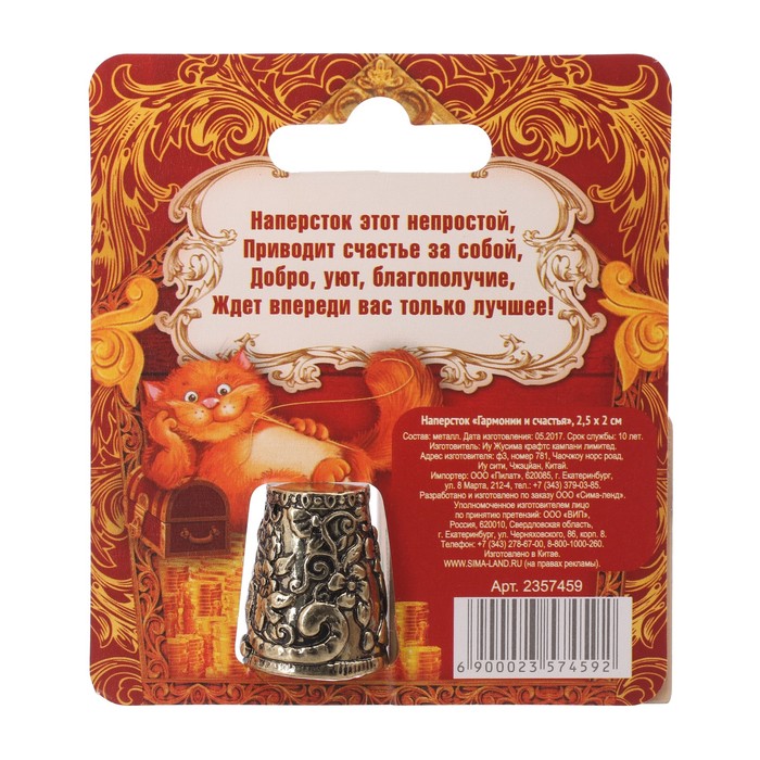 Наперсток" Гармонии и счастья", 2,5 х 2 см
