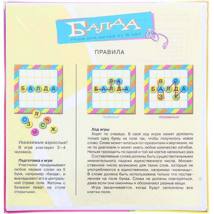 Если ваш ребёнок уже освоил классический «Эрудит», и он ему немного поднадоел, хочется чего-нибудь новенького, то игра «Балда» создана именно для него! Из-за компактных размеров набор можно брать с собой в дорогу, на дачу, на отдых или в гости.